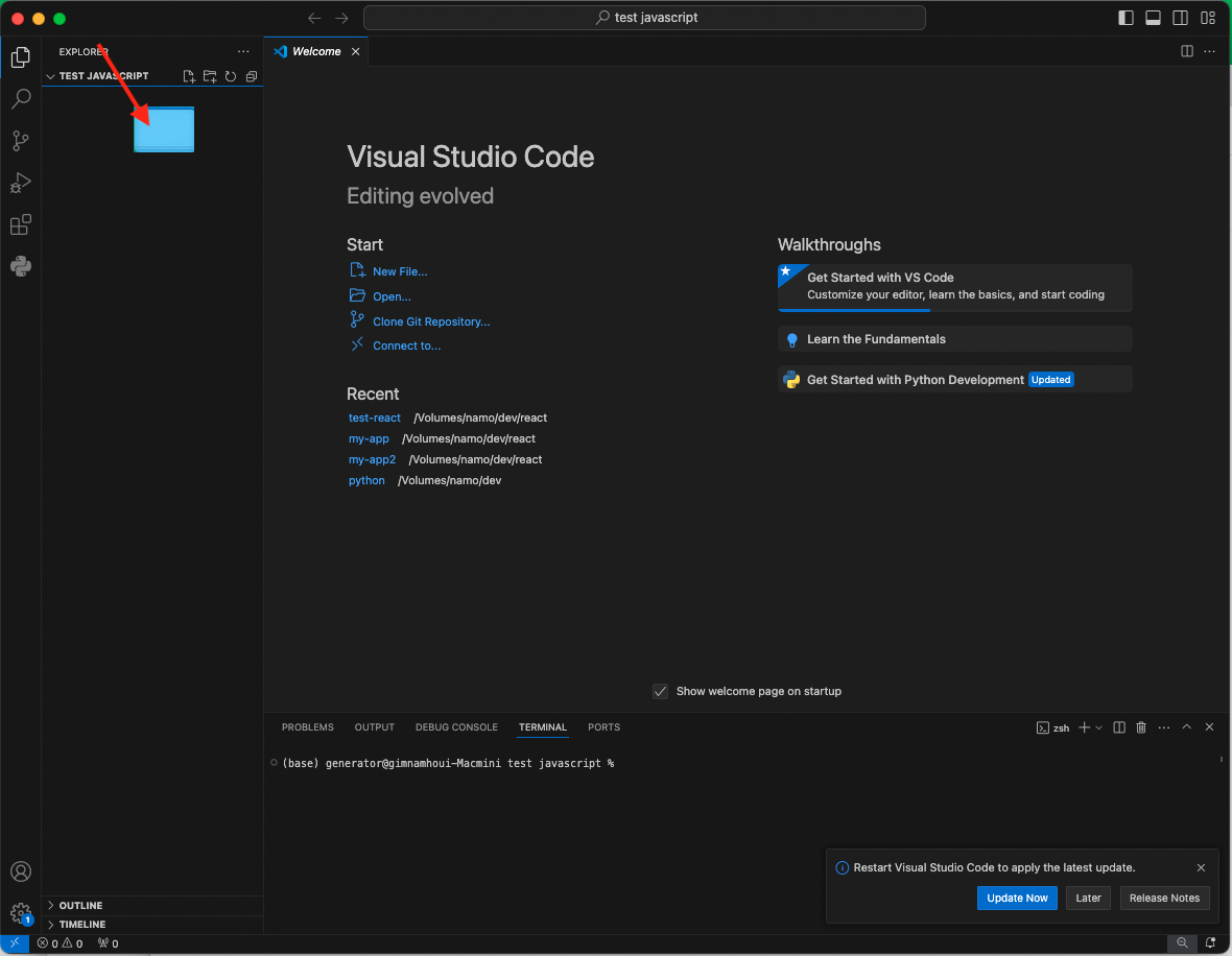 2. vscode 실행 후 폴더를 드레그