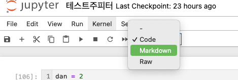 Cell을 선택한 후 마크다운 셀로 변경한다
